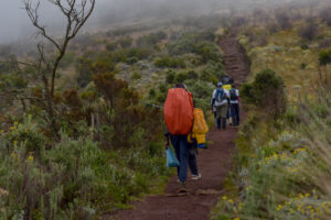 Mandara Huts (2,740 m/9,000 ft) to Horombo Huts (3,690 m/12,100 ft)11 km, 6-8 hours Heath land