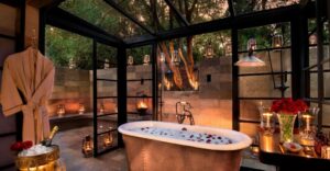 locations. Comprised of just two intimate camps of nine Luxury Tents each and a Luxury Family Tent; each with its private butler and housekeeper reflects the ambiance and glamour of Kenyan explorers of old. Slip into a world of hardwood floors, polished silver, and copper bathtubs juxtaposed against the romance of the open Mara plains, with their abundant herds of wildlife. Beautifully handcrafted artifacts, fine antiques, leather buttoned Chesterfield sofas, books, and crystal, and candlelight adorn the comfortable sitting and dining areas.